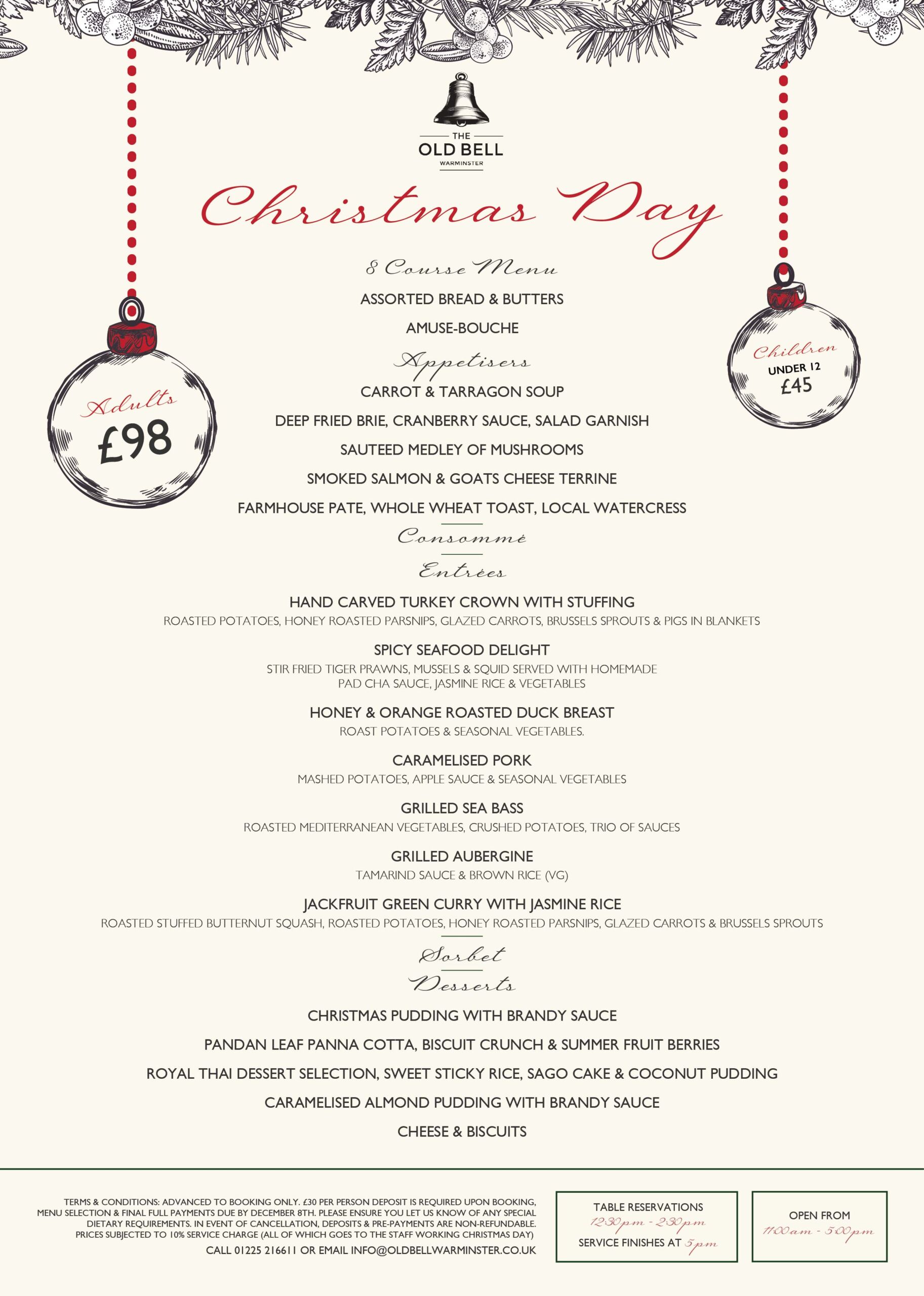 Bookings, pre-selection and deposits are still required and we will throw in the crackers at no extra charge!